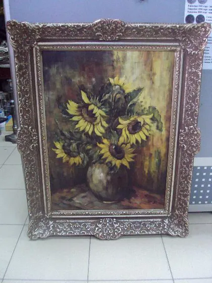 Большая картина Натюрморт Подсолнухи в ажурной раме. масло, холст №160