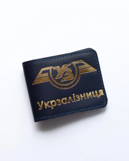 Обкладинка для посвідчення "Укрзалізниця", синя з позолотою