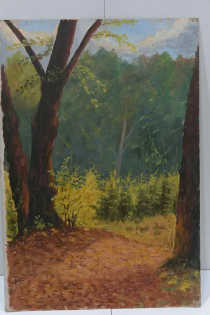 Картина Пейзаж лес, деревья, подписная F.S. Холст масло 65,5 х 50 см №220