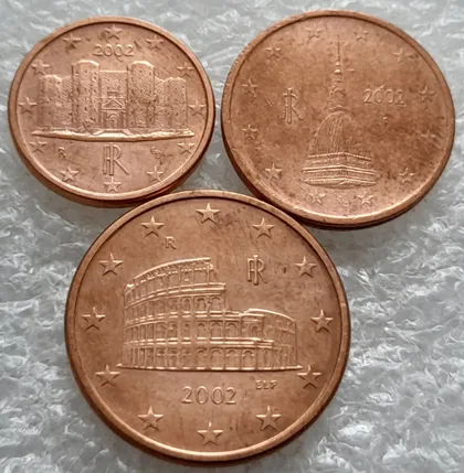 (1850да) 1,2,5 євроцентів 2002 Італія - 3 монети одним лотом (1,2,5 евроцентов 2002 Италия)