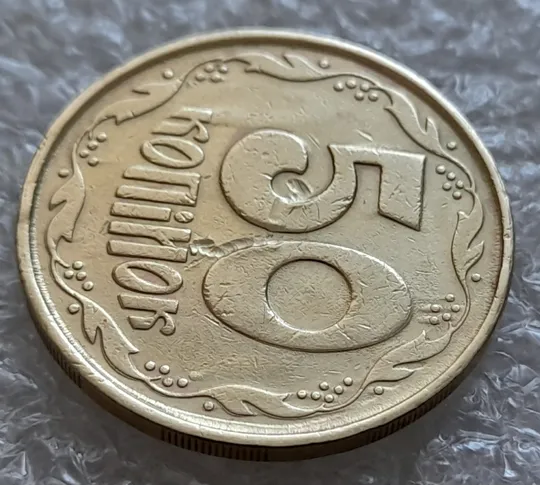 Купити (5379) 50 копійок 1992 2.2ААм зминання + "тінь", наплив металу + брак "привид" (50 копеек 1992 2.2ААм) на аукціоні