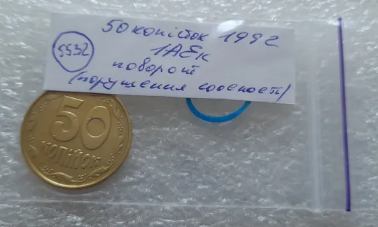 Купити (5532) 50 копійок 1992 1АЕк поворот (порушення соосності) (50 копеек 1992 1АЕк брак сдвиг) на аукціоні