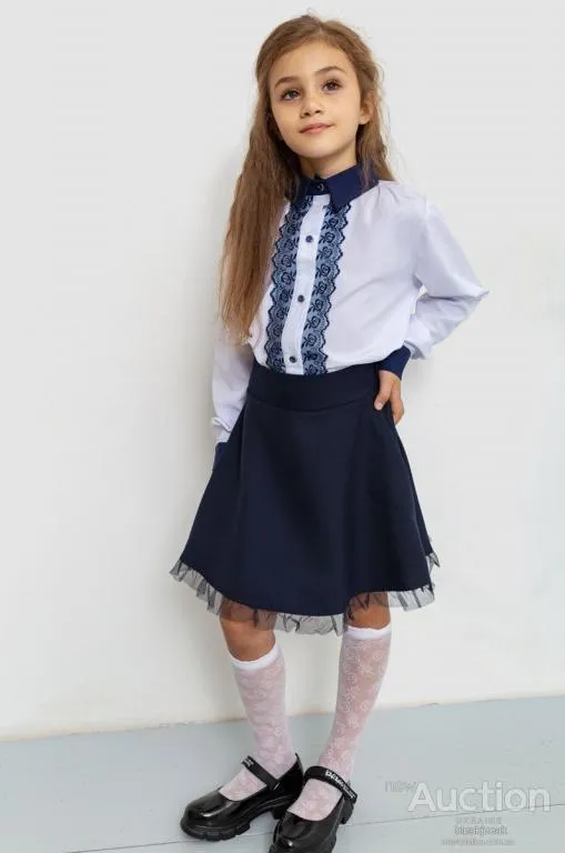 Купити Блуза для девочек нарядная, цвет бело-синий, 172R201-1 на аукціоні