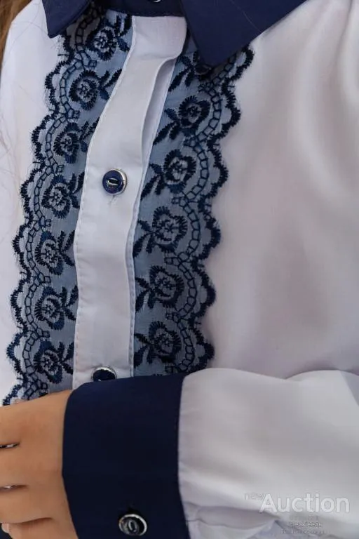 Купити Блуза для девочек нарядная, цвет бело-синий, 172R201-1 на аукціоні