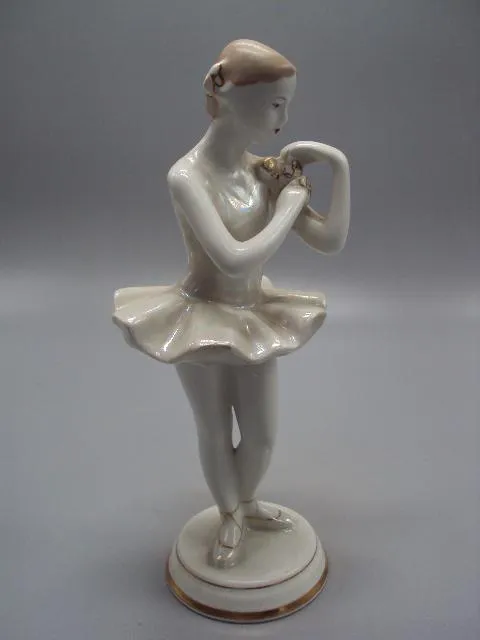 Фигура фарфор статуэтка ДФЗ Вербилки балерина с цветком девочка балет высота 21,2 см №14525(1650423)