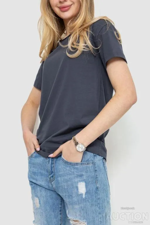 Купити Футболка женская однотонная, цвет темно-серый, 102R5248 на аукціоні